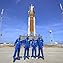 So has the country's embrace of immigrants, and its vision of itself as a defender of democracy around the world. On a day all three are in play, we'll meet the crew headed out toward the moon.